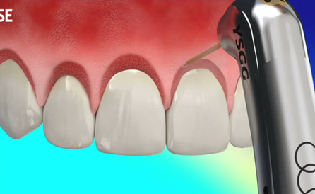 Waterlase YSGG laser can be used to remove excessive gum by removing enlarged gums with a predefined template. Sometimes bone correction is also required to establish a good biological width that is the relationship between the crest of gum margin and crest of tooth bone margin which is normally upto 3 mm minimum.